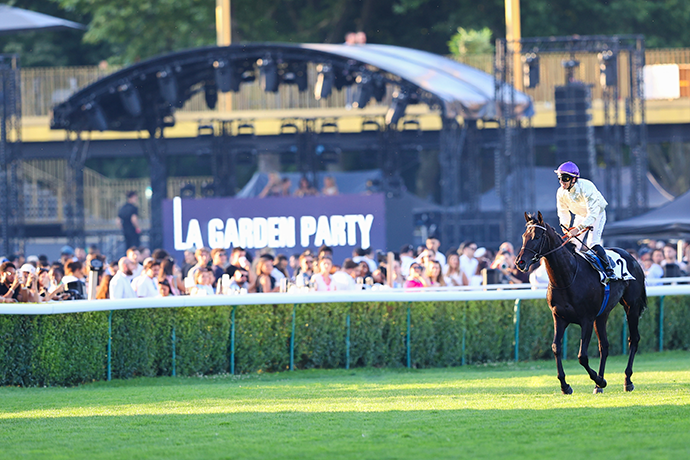 イベント同日の夜には雰囲気が一変。パリロンシャン競馬場では、毎年恒例の「ガーデンパーティー」が開催されました。音楽イベントでは、フランス出身の人気エレクトロデュオ・Trinixをはじめ、数々の有名アーティストが圧巻のパフォーマンスを披露。会場は大いに盛り上がりました!