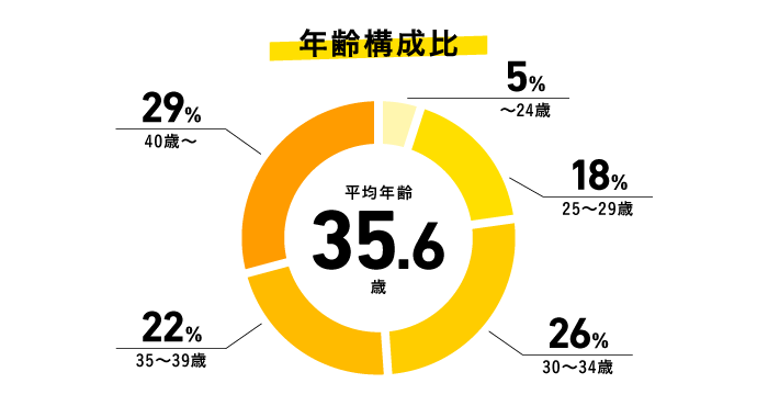 新卒採用を開始した2013年以来、多くの新卒社員が活躍しています。新卒・第二新卒をはじめとした若手の育成環境づくりにも力を入れており、入社後にリーダーやマネージャー、ディレクターへとキャリアを築くスタッフも増えてきました。また、キャリア採用のスタッフもプロジェクトの中核を担う存在として幅広い場面で活躍しています。