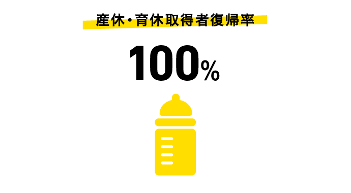 完全週休2日制で、年間休日は120日以上。夏期休暇や結婚休暇など、リフレッシュできる制度も用意しています。平均残業時間は月16.7時間。子育て世代のサポートにも注力しており、産休・育休からの復帰率は100%。ライフステージに応じて働けるような環境を整備しています。