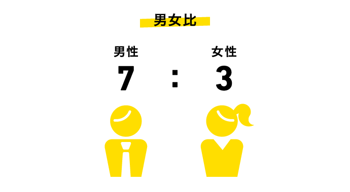 20代の若手から40代以上のベテランまで、幅広い世代のスタッフが力を合わせて「最高のコンテンツ作り」に取り組んでいます。また、男女比は7:3で、男女ともに様々な部署や役職で活躍しています。