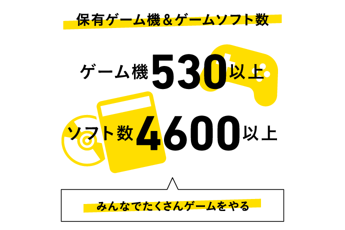 サイゲームスには「みんなでたくさんゲームをやる」というミッションステートメントがあります。「誰よりも面白いゲームを作る人は、誰よりもたくさんの面白いゲームをプレイしているはず」という考えのもと、社内で530台以上のゲーム機と4600本以上のゲームソフトを遊べる状態にしています。昼休みや定時後のプレイルームでは、アクションゲームやRPG、格闘ゲーム、リズムゲームなど、幅広いジャンルのゲームを楽しむスタッフの姿が多く見られます。