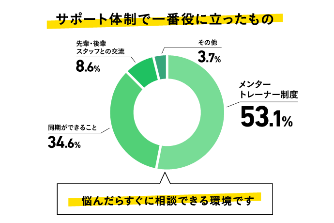 また、「同期がいる安心感」も多くのスタッフが挙げるポイントです。