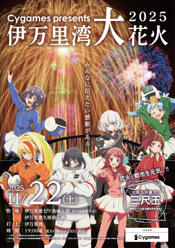 11月22日(土)佐賀県伊万里市の伊万里湾にて「Cygames presents 伊万里湾大花火2025」が開催されます。