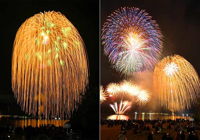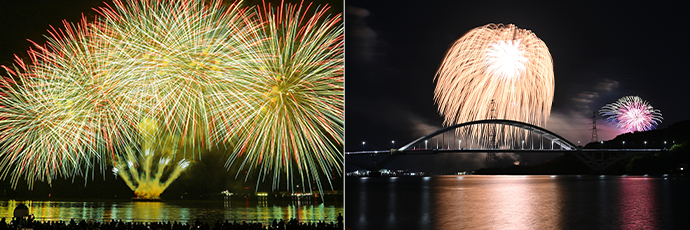 雄大な伊万里湾を舞台に、北部九州最大級の3尺玉をはじめとした壮大な花火のエンターテインメントをお楽しみいただけます!