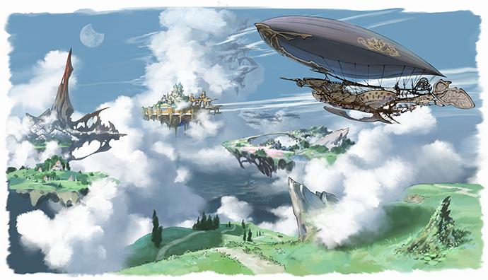 方針が決まった段階ですでに、CyDesignationの皆葉英夫さんら何名かがアイディア出しとして描かれていたアートや、“空に島が浮かぶ世界”という、今の『グラブル』のビジュアルに近い風景のコンセプトアートがありました。それを活かすかたちで空の世界を題材にしたRPGという方向性が明確に定まったんです。