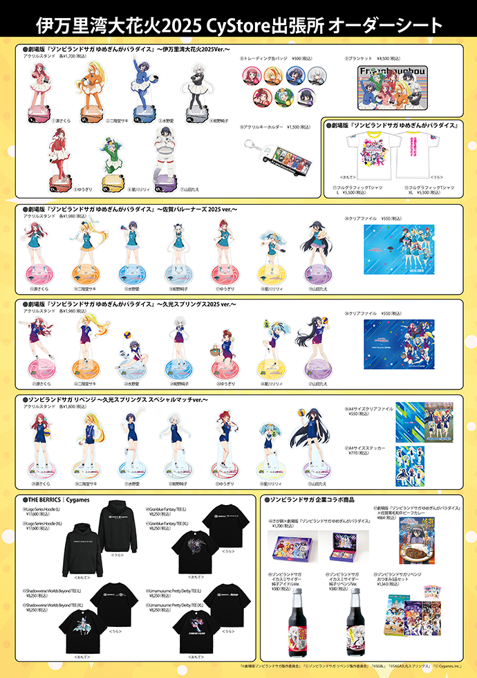 会場には、劇場版『ゾンビランドサガ ゆめぎんがパラダイス』物販コーナーを設置。描き下ろしイラストが描かれたグッズなどの販売を行い、多くのファンの方に手に取っていただきました。