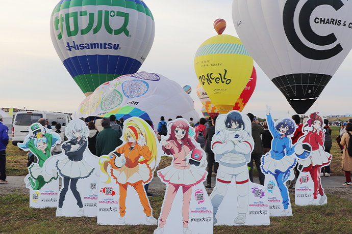 ▲会場にはキャラクターパネルを設置。背景には空飛ぶバルーンの様子も!