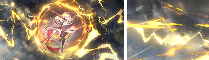 マサヒロ オープンソースのシェーダー「NOVA Shader」(※)を自社でカスタマイズし、フローマップやフレームバッファを用いた画面ディストーション(※)など、前作にはなかった表現を盛り込んでいます。同じカードのエフェクトを前作と比較すると、進化具合がわかるのではないかと思います。