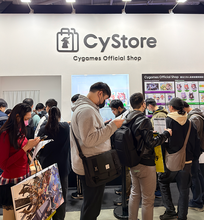 また、公式ストア「CyStore」の物販コーナーでは『Shadowverse: Worlds Beyond』『ウマ娘 プリティーダービー』『プリンセスコネクト!Re:Dive』『グランブルーファンタジー』『グランブルーファンタジーヴァーサス -ライジング-』『グランブルーファンタジー リリンク』のグッズを取り扱い、購入特典として限定ステッカーの配布も実施。多彩な内容でファンのみなさんをお迎えしました。