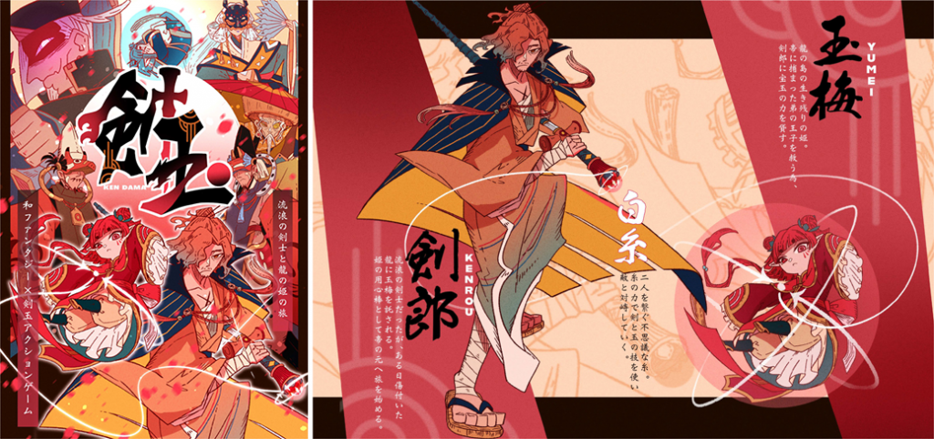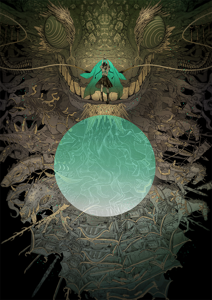 龍という空想上の生物を様々な姿形に解釈して描いたり、和の世界観や時代観とズレた要素として普通の制服を着た女の子を超常的な雰囲気で描くことで、見た人が様々なストーリーを想像してもらえるような絵を意識しました。