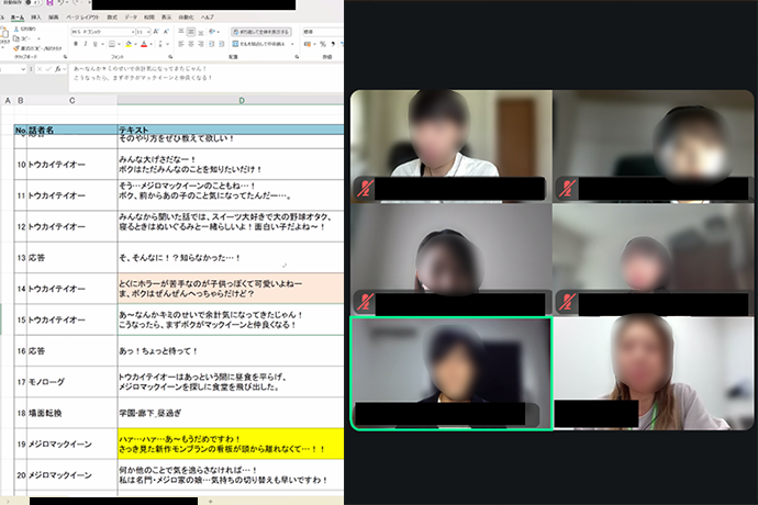 事前に執筆したシナリオ課題をもとに、制作意図の確認とフィードバックを受けられます。その内容を踏まえて修正稿を仕上げることで、「依頼者の意図に沿ってテキストを仕上げる」ための考え方と手順を実践を通じて身に付けることができます。