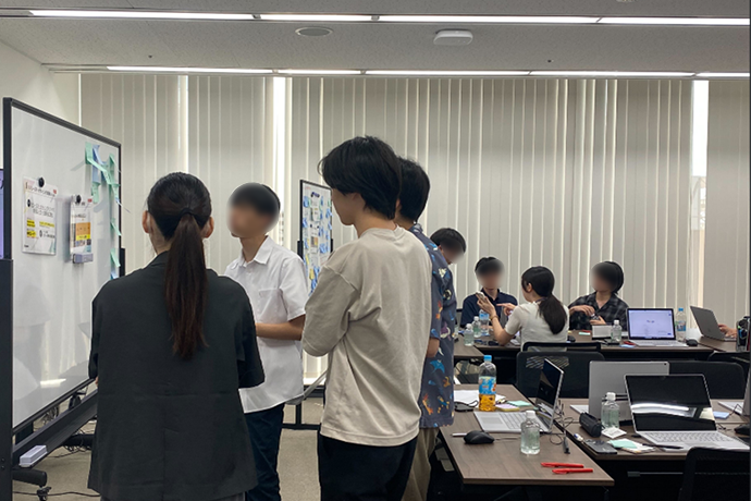 マーケティングに関する講義の後、グループワークでコンテンツの魅力を届ける企画をまとめ、プレゼンします。