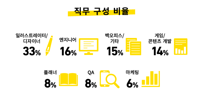 신입 채용을 처음 시작한 2013년 이후로 많은 신입 사원들이 활약하고 있습니다. 신입 사원을 비롯한 젊은 인재들의 성장 환경 조성에도 힘을 쏟아, 입사 후 리더, 매니저, 디렉터로 커리어를 쌓아 가는 스태프도 늘고 있습니다. 또한, 경력 채용을 통해 합류한 스태프들 역시 프로젝트의 핵심이 되어 다양한 곳에서 활약하고 있습니다.