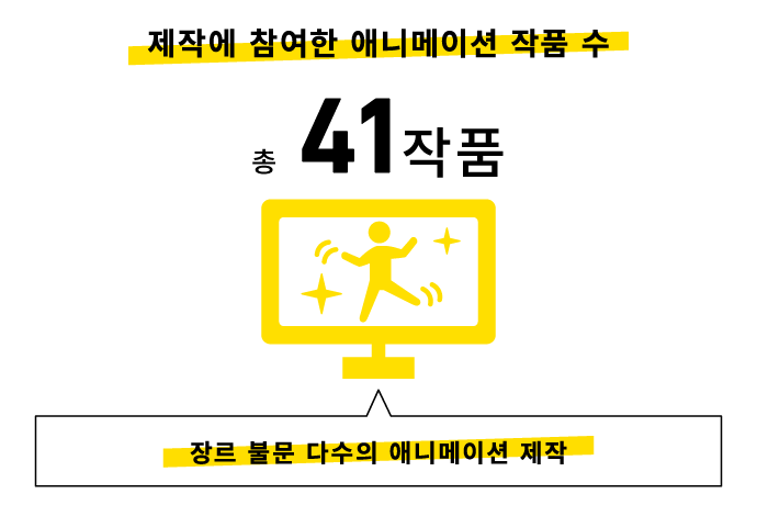 애니메이션 카테고리에서는 ‘좀비랜드 사가’, ‘용기폭발 뱅브레이번’과 같은 오리지널 애니메이션 작품, ‘우마무스메 신데렐라 그레이’, ‘프린세스 커넥트! Re:Dive’ 등 자사 IP를 애니메이션화한 작품, ‘우마무스메 PRETTY DERBY 새로운 시대의 문’, ‘좀비 랜드 사가 유메긴가 파라다이스’와 같은 극장판 작품의 제작에 관여해 왔습니다. 작품마다 제작 방식이 각각 달라 제작의 중심이 되어 관여한 경우도 있고 출자 형태로 참가한 경우도 있습니다. 또한 사이게임즈의 자회사인 ‘CygamesPictures’와 연계해 다채로운 장르와 표현에 도전할 수 있는 체제를 갖추고 있습니다.