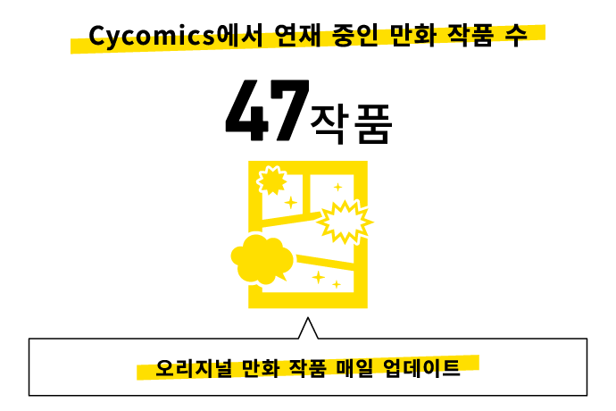 만화 카테고리에서는 2016년 5월부터 만화 연재 플랫폼 ‘Cycomics’를 운영하고 있습니다. 액션, 코미디, 호러, 연애 등 다양한 장르를 다루며 2025년 8월 말 기준 총 47작품을 연재 중입니다. 만화의 틀을 넘어선 콘텐츠 전개에도 힘쓰고 있습니다.