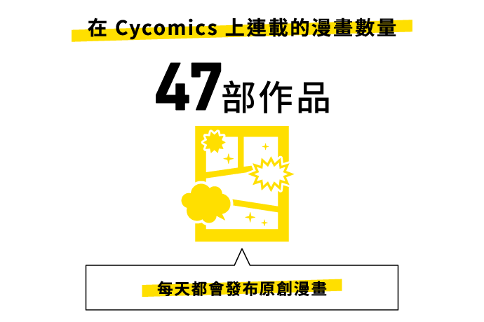 至於漫畫方面,則是自 2016 年 5 月開始發展漫畫傳播服務「Cycomics」。類型涵蓋動作、喜劇、恐怖、戀愛各種領域,在 2025 年 8 月底的時間點已有共計 47 部作品在連載中。