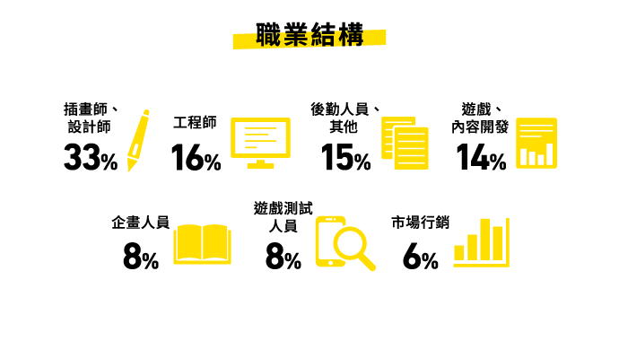 公司內部在職員工涵蓋了相當廣泛的職業類別,像是插畫師、設計師,或是工程師、後勤相關人員等等。Cygames 秉持「隨時保有『Team ‧ Cygames』的團隊意識」的企業宗旨,跨越職業藩籬同心協力,只為提升業務品質及流程效率。